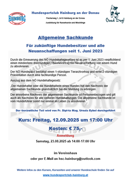 Erst wenn ein weiterer Hund (ab dem 1. Juni 2023) vom Hundehalter oder der Hundehalterin im Haushalt aufgenommen wird, ist der Nachweis der allgemeinen Sachkunde - dieser gilt jedoch auch dann als Nachweis der allgemeinen Sachkunde für weitere Hundehaltungen - zu absolvieren.